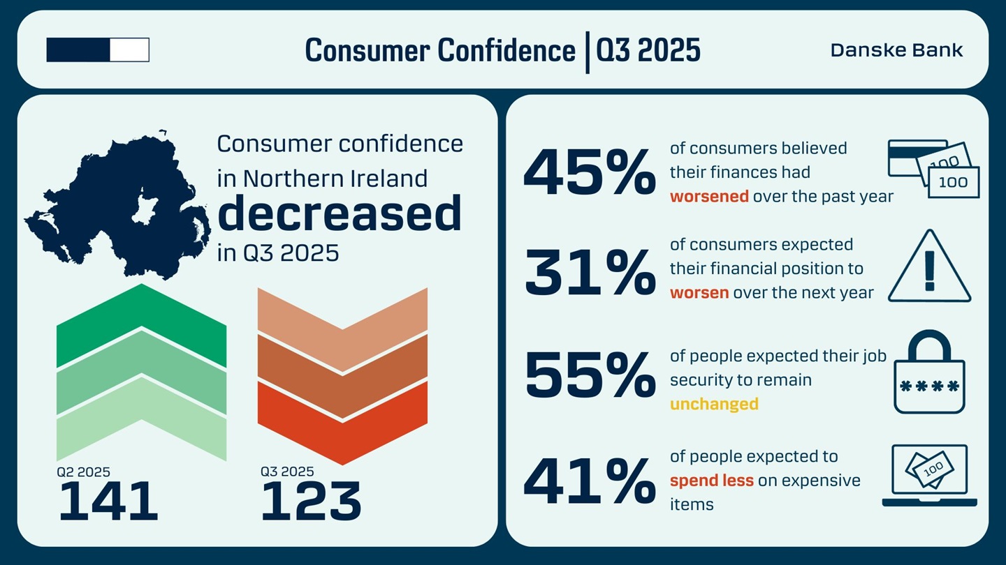 Danske Bank’s survey of 1,000 people across Northern Ireland in September this year found that higher prices and the performance of the local economy, as well as ongoing global risks, weighed down on confidence.