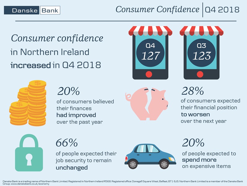 The Danske Bank Northern Ireland Consumer Confidence Index rose to 127, up from 123 in the third quarter and 123 at the end of 2017.