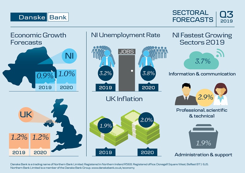Looking forward, household spending power is likely to be the main driver of economic growth as the export environment has deteriorated and Brexit is expected to continue weighing on business investment. We are forecasting economic growth in Northern Ireland of 0.9% this year and 1.0% in 2020.