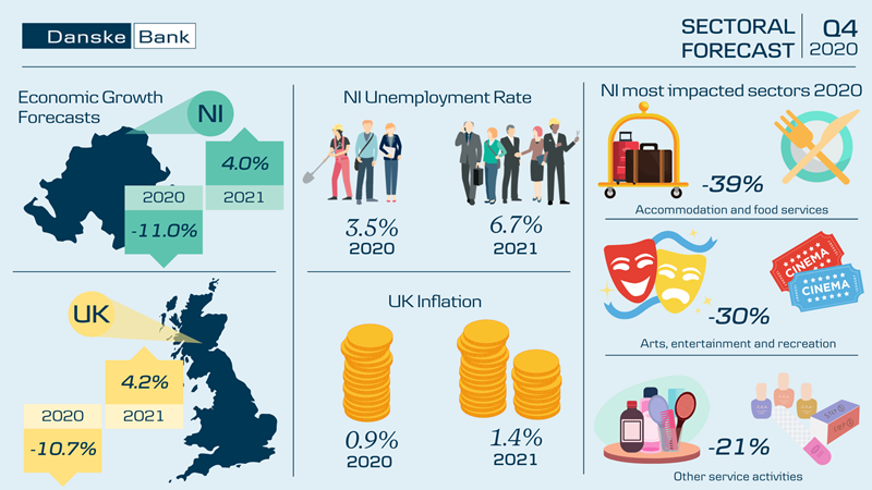 The Northern Ireland economy continues to be heavily influenced by the coronavirus pandemic, with the tighter restrictions in both the final quarter of 2020 and the first quarter of 2021 stalling the recovery that had begun over the summer and the early autumn. The rollout of the vaccine programme will hopefully see the gradual economic recovery restart in the second quarter of 2021, however it is likely to be a number of years before output returns to its pre-coronavirus level and there is still a great deal of uncertainty and risk to the outlook. We estimate that the Northern Ireland economy contracted by around 11% in 2020 and have revised our forecasts for 2021 downwards and now believe that the local economy will only expand by about 4% in 2021.