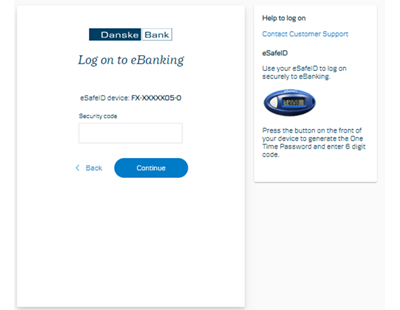You must complete the full eBanking logon process before activating Danske ID and logging on to the Mobile Banking app.