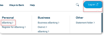 - Choose 'Log on' and 'eBanking' .